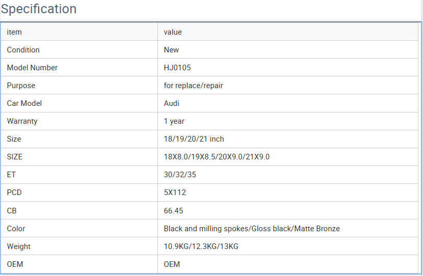 Size :18X8.0/19X8.5/20X9.0/21X9.0